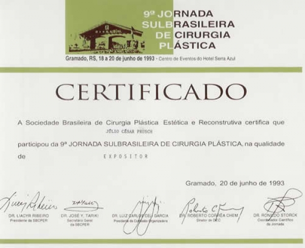 9º Jornada Sulbrasileira de Cirurgia Plástica - Gramado/RS - 20/06/1993