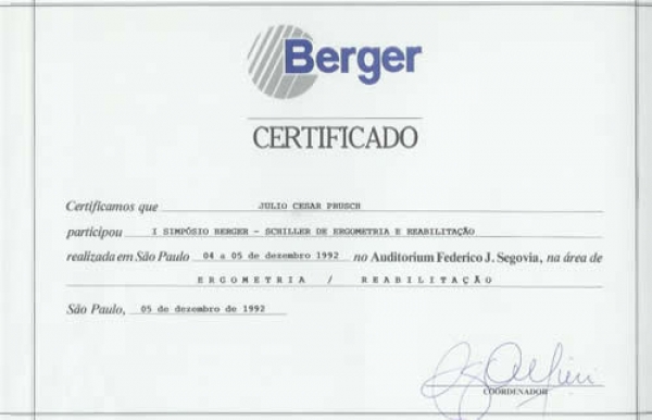 I Simpósio Berger-Schiller de Ergometria e Reabilitação - São Paulo/RS - 05/12/1992